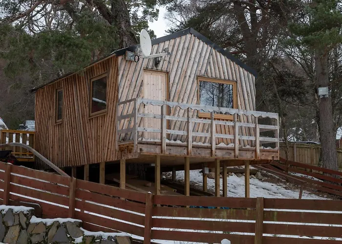 Pine Marten Bar Glenmore Treehouse tilbyder indkvartering med gratis parkering, en tennisbane og en sauna og ligger 4,2 km fra Car Park. Lokale attraktioner inkluderer Glenmore Forest Park få skridt væk fra alpehytte og 9 km fra byens centrum.